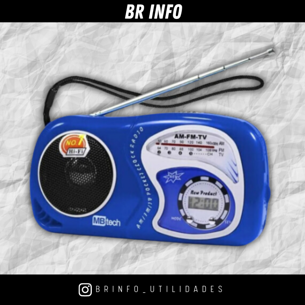 Rádio Portátil Retro FM/AM com Relógio Digital