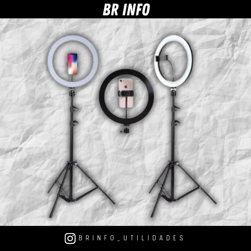Além de um excelente Ring Light você também vai ter um tripé Profissional com altura máxima de 2,10m e mínima de 65 cm